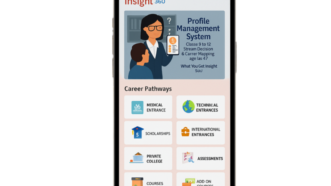 INSIGHT 360 delivers 14 integrated education services: entrance exam guidance, scholarship matching (500+), college recommendations, career assessment, eligibility verification, online learning support, interview coaching, and career placement up to finishing schools. Available 24/7 via our platform. Trusted by 5,000+ students across Kerala. Your complete admission strategist.