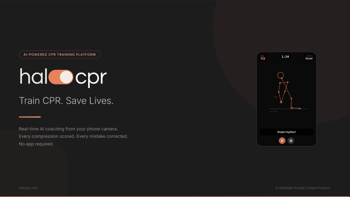 HaloCPR is a revolutionary browser-based AI CPR training coach designed to democratize life-saving education. Addressing India's critically low 1.3% bystander CPR rate, it completely eliminates the need for expensive mannequins, certified trainers, and physical classrooms.