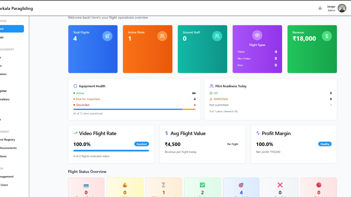 The SaaS platform centralizes critical workflows, combining real-time weather intelligence for automated go/no-go decisions, instructor fatigue monitoring, and digital equipment lifecycle tracking with automated inspection schedules. It also seamlessly integrates daily operational needs, including booking and scheduling workflows, participant safety briefings, and structured incident reporting.